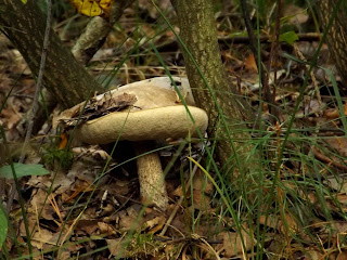 Kilka dni, już jesiennych spędziłyśmy na skraju, w oczekiwaniu na grzyby i ich wysyp ..... ale na próżno. Z dwugodzinnego spaceru po lesie przyniosłyśmy garstkę, kilka, w tym jeden znalazłam ja a resztę Przyjaciółka. Ale była jajecznica z grzybami i sosik, dla dwóch, spragnionych leśnych smaków kobiet.